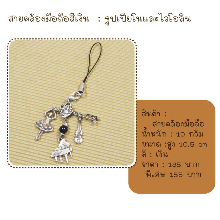 ที่ห้อยมือถือ รูปเปียโนและไวโอลิน สีเงิน