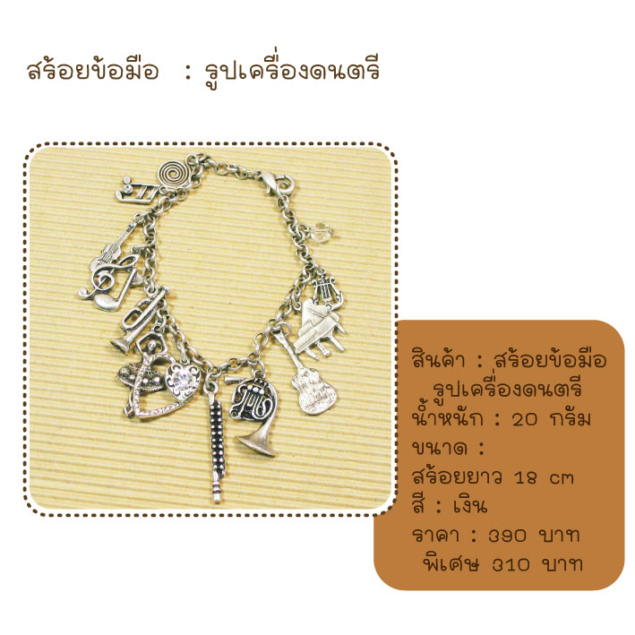 สร้อยข้อมือ เครื่องดนตรี สีเงิน