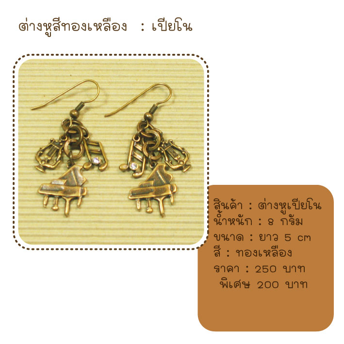 ต่างหู เปียโน สีทองเหลือง