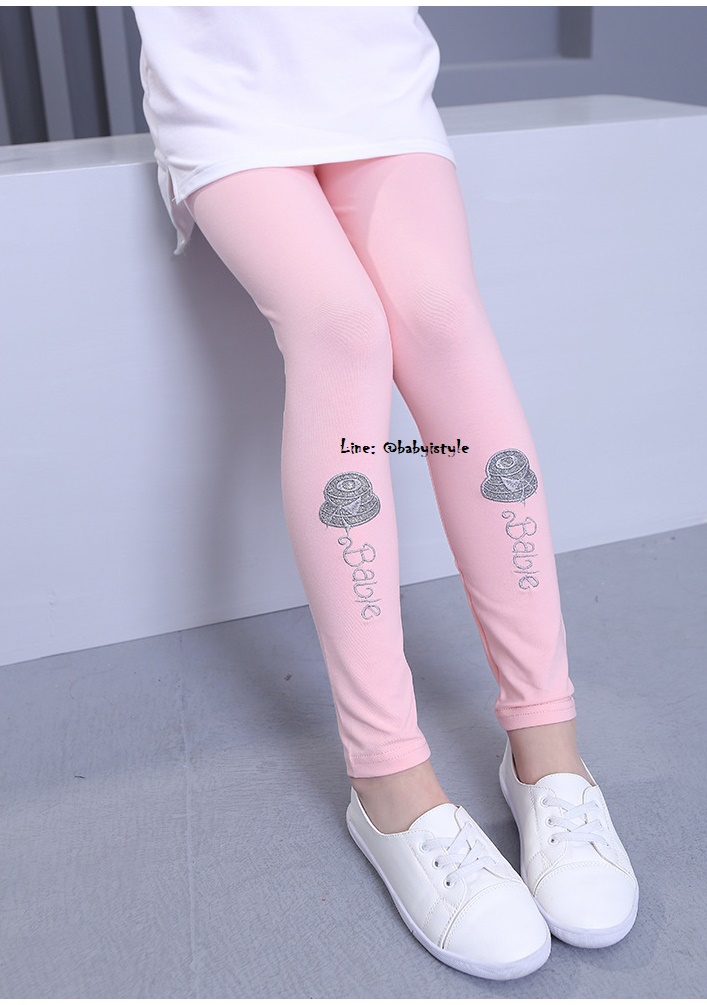 เด็กโต-เลกกิ้งขายาวสีชมพู ปักหมวก เอวยางยืด ผ้ายืดหยุ่นได้ดี สวยน่ารัก ไซส์ 140/150/160