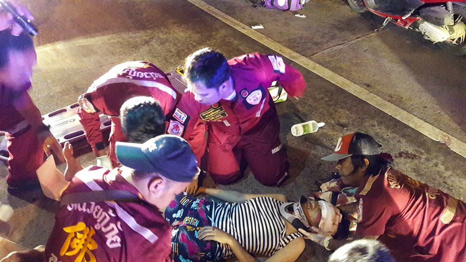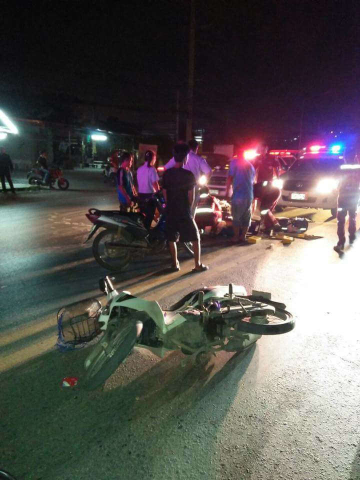 กระบะอัดท้าย จยย.!! หนูน้อยกระเด็น ออกจากอ้อมกอดเเม่!!..... www.arjanpong.com #กระบะ #จยย.#หนูน้อย #อุทัย #บางปะอิน Credit : สมาคมอยุธยารวมใจ หน่วยกู้ภัยอยุธยา วันเสาร์ที่ 5 สิงหาคม 2560 เวลา 22:55 น. ศูนย์รวมใจอุทัยจัดกำลังเจ้าหน้าที่กู้ภัยออกตรวจสอบอุบัติเหตุบนสะพานข้ามสี่แยก อุทัย-บางปะอิน จากการตรวจสอบพบ รถจำนวน 2 คัน 1.รถยนต์กระบะ เชฟโนเลต สีเทา บย 9571 พระนครศรีอยุธยา 2.รถจักรยานยนต์ส่วนบุคคล ฮอนด้าคลิก สีดำ 1กธ9182 เชียงใหม่ จากการตรวจสอบเบื้องต้นรถยนต์กระบะได้ชนท้ายรถจักรยานยนต์ส่งผลให้ม...