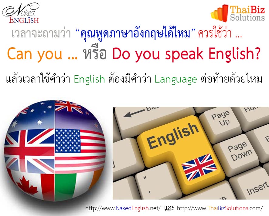 เวลาที่คุณจะถามชาวต่างชาติว่า “คุณพูดภาษาอังกฤษได้มั้ย” หรือ “คุณพูดไทยได้มั้ย” เนี่ย คุณควรพูดว่า 1.) Do you speak English? คุณพูดภาษาอังกฤษได้มั้ย (ไม่ควรใช้ว่า Can you speak English?) Do you speak English? มันจะหมายความรวมถึงว่า “คุณพูดภาษาอังกฤษรู้เรื่องใช่มั้ย” ด้วยนะครับ ดังนั้นคุณจึงควรเลือกใช้ให้ถูก คำว่า “ได้มั้ย” ในประโยคข้างต้นมันช่างยั่วยวนให้คนไทยเราคิดถึงคำว่า Can you … เสียเหลือเกิน แต่เนื่องจากว่า เวลาที่เราถามคนๆหนึ่งว่า &ld...