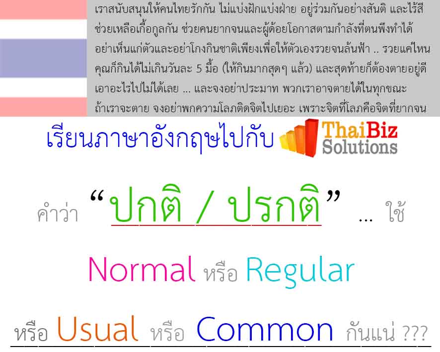 มาเรียนภาษาอังกฤษในชีวิตประจำวันกันแบบเนื้อๆ เน้นๆ กันครับ เวลาเราจะแปลหรือพูดภาษาอังกฤษเนี่ย ขอย้ำว่า (ที่ผ่านมาผมก็ย้ำมาหลายครั้งแล้ว อย่าเพิ่งเบื่อกันนะครับ) เราไม่ได้แปลแบบเอาศัพท์เป็นตัวๆ มาวางเรียงต่อๆกัน ดังนั้น วิธีการที่คนไทยเราเรียนภาษาอังกฤษแบบสักแต่ท่องศัพท์อย่างเดียว นั่นจึงไม่ถูก ถ้าเราทำแบบนั้น มันจะเป็นประโยชน์น้อยเหลือเกิน เพราะว่าเราจะนำมันมาใช้พูดหรือเขียนไม่เป็น คุณว่ามั้ยครับ ... เราควรต้องสอนให้เด็กไทยหรือคนไทยโดยทั่วไปรู้จัก “วิธีการคิดแบบฝรั่ง” และนี่คือสิ่งที...