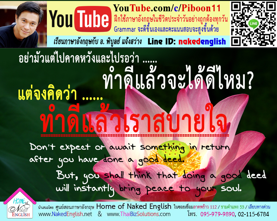 โครงสร้างประโยคภาษาอังกฤษในลักษณะว่า: The + คำที่เป็น “ขั้นกว่า”, the + คำที่เป็น “ขั้นกว่า.” จะแปลว่า “ยิ่ง ....., ก็ยิ่ง .....” เช่น The sooner, the better! แปลว่า “ยิ่งเร็ว ยิ่งดี” เอาไว้ใช้ในเหตุการณ์เช่นว่า คนที่ 1: “เธออยากให้ฉันไปถึงบ้านเธอกี่โมงดีล่ะ” (What time would you expect me to be at your home?) คนที่ 2: “ยิ่งเร็ว ยิ่งดี” (The sooner, the better!) The more you give, the more you get. (ยิ่งให้ ก็ยิ่งได้) The hi...