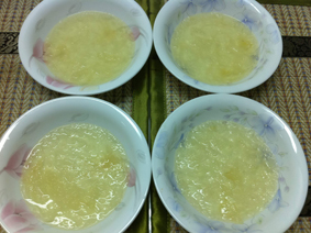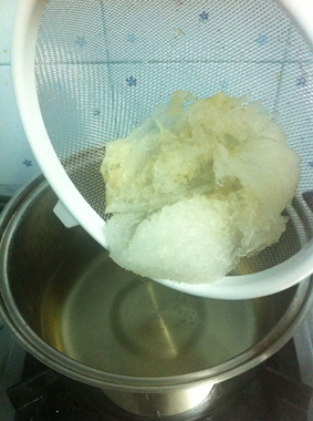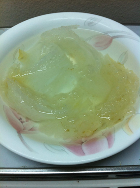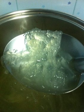 2. แช่ทิ้งไว้6-8ชั่วโมง รังนกจะออกมาหน้าตาแบบนี้นะครับ