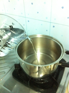 3. เราก็มาเริ่มตั้งเตาต้มกันได้เลย เติมน้ำ750ซีซีนะครับ