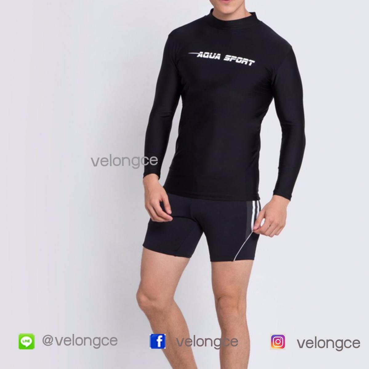 เสื้อว่ายน้ำแขนยาวสีพื้น สกรีนAqua sport