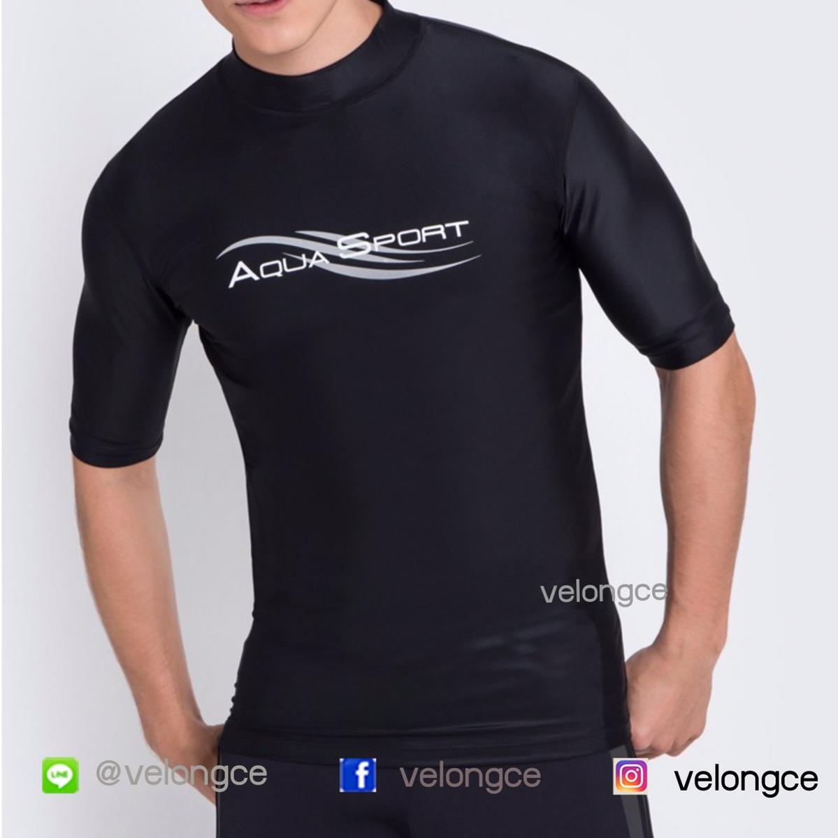 เสื้อว่ายน้ำแขนยาวสีพื้น สกรีนAqua sport
