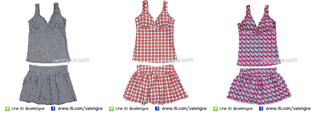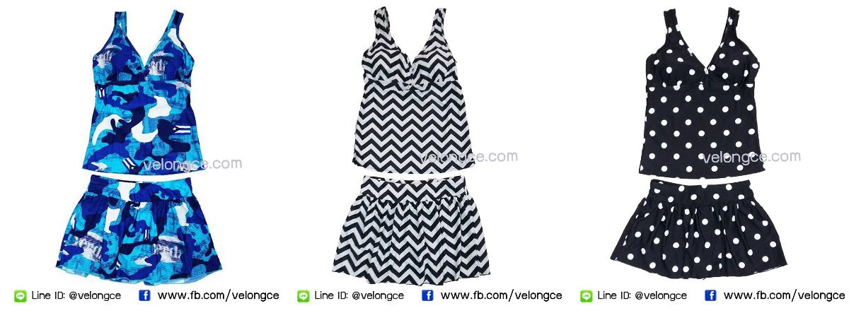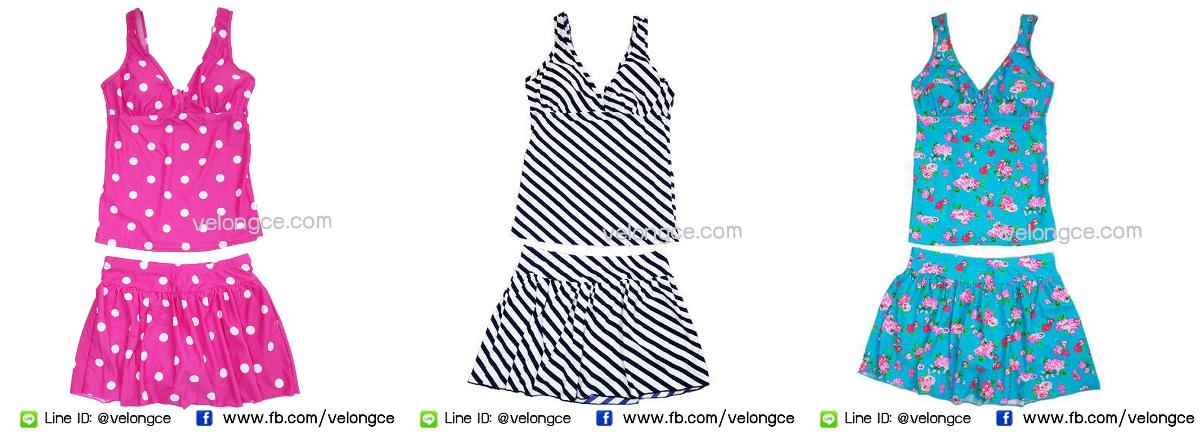 ชุดว่ายน้ำ 2 ชิ้น เสื้อกล้าม คู่กระโปรงกางเกง