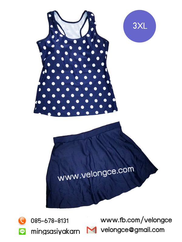 No.21953X ชุดว่ายน้ำ 2 ชิ้น Size 3XL เสื้อกล้ามลายทรงสปอร์ต หลังสปอร์ต คู่กระโปรงสีพื้น
