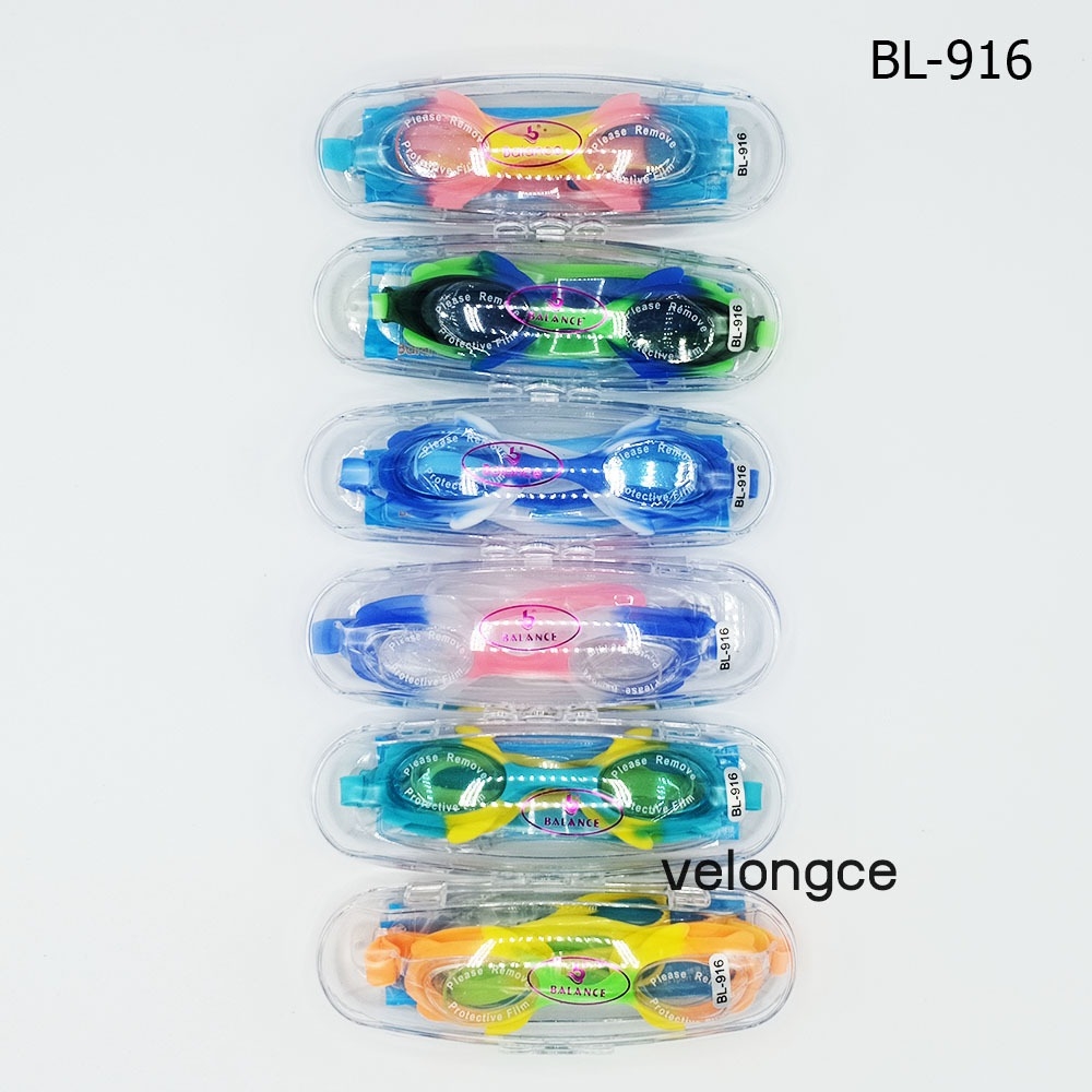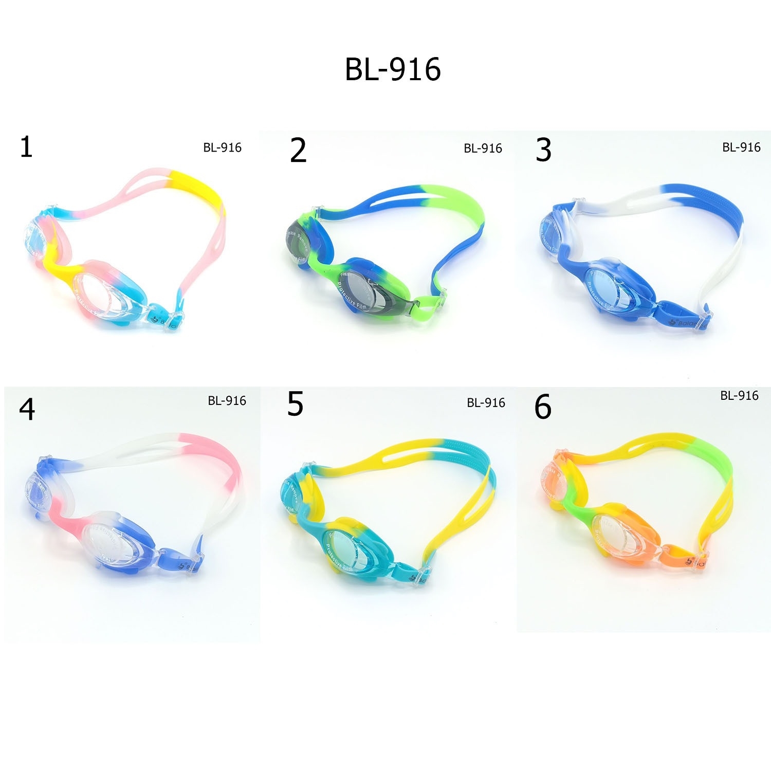 รุ่น BL916 แว่นว่ายน้ำสำหรับเด็ก ใส่กล่อง มี 6 สี ซิลิโคนนิ่ม 2 สาย