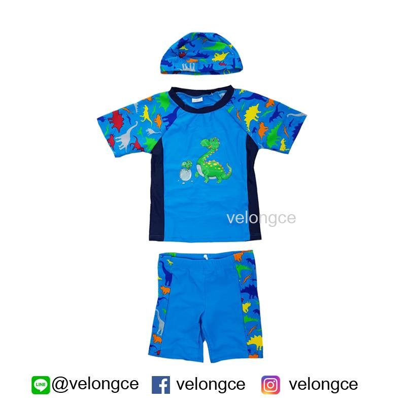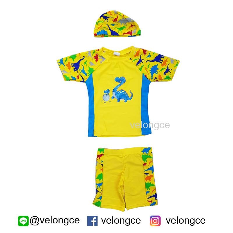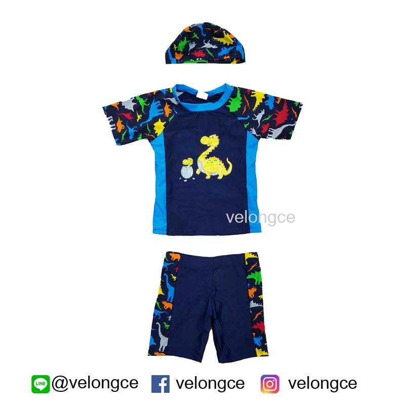 ชุดว่ายน้ำเด็ก 2 ชิ้น แขนสั้น ขาสั้น ลายไดโนเสาร์