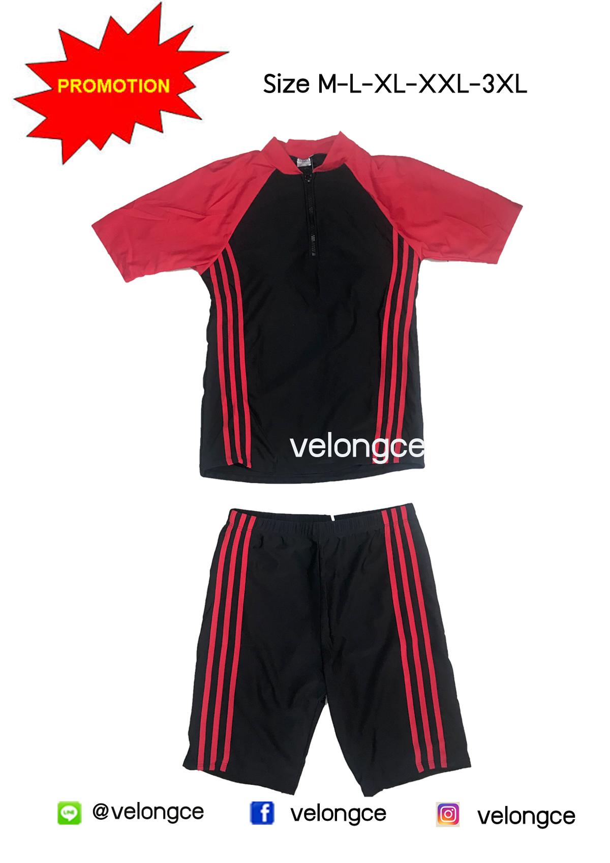 ชุดว่ายน้ำ 2 ชิ้น เสื้อแขนสั้น กางเกง มีเชือกและฟองน้ำ(ถอดได้) ไซส์ M,L,XL,XXL,3XL