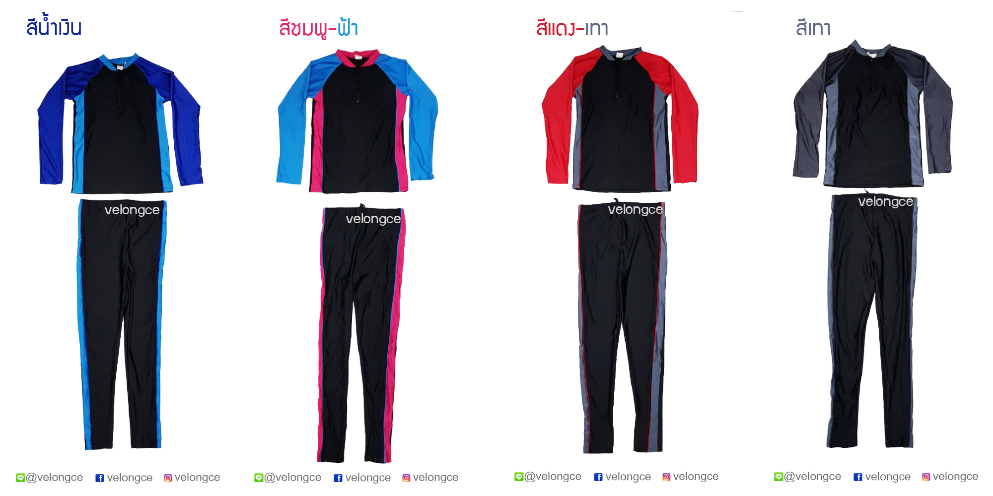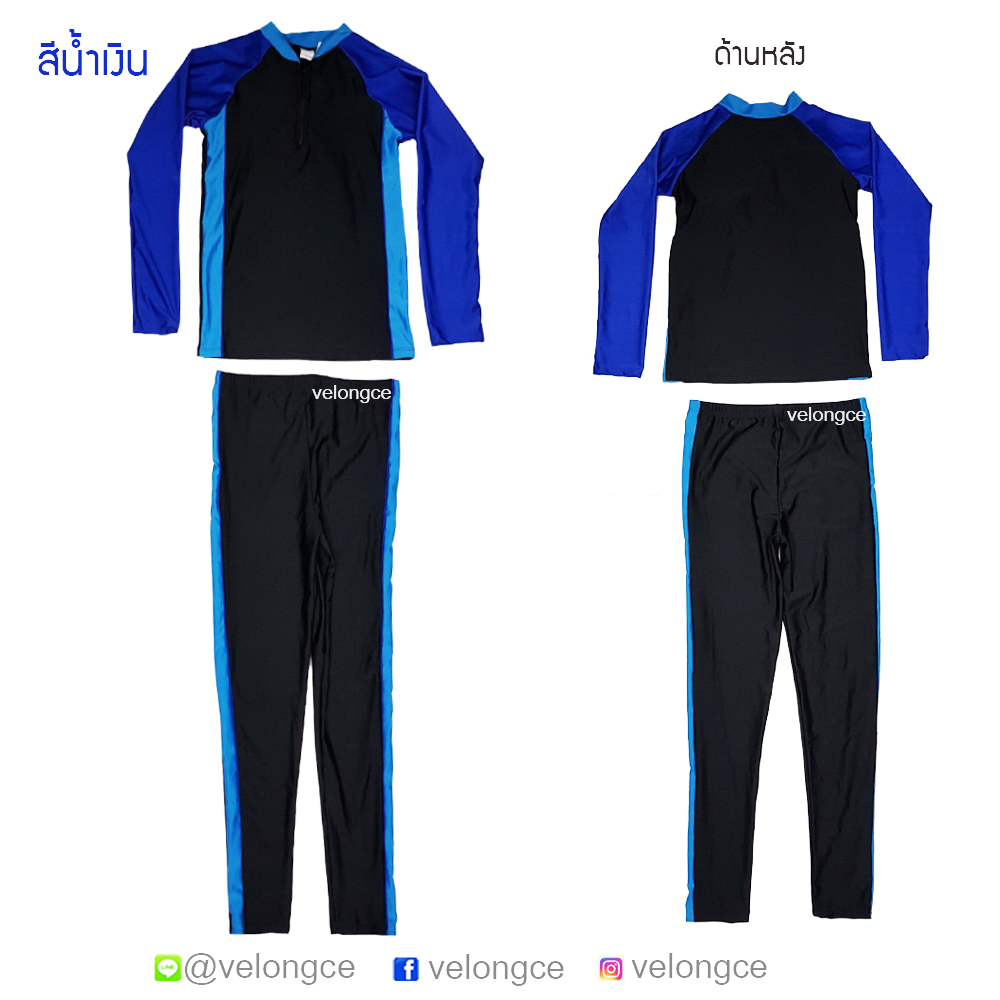 รุ่น 91002 ชุดว่ายน้ำทรงสปอร์ต 2 ชิ้น แขนยาวขายาว ใส่ได้ทุกเพศ size M-L-XL-XXL-3XL-4XL