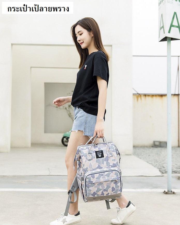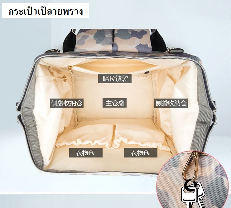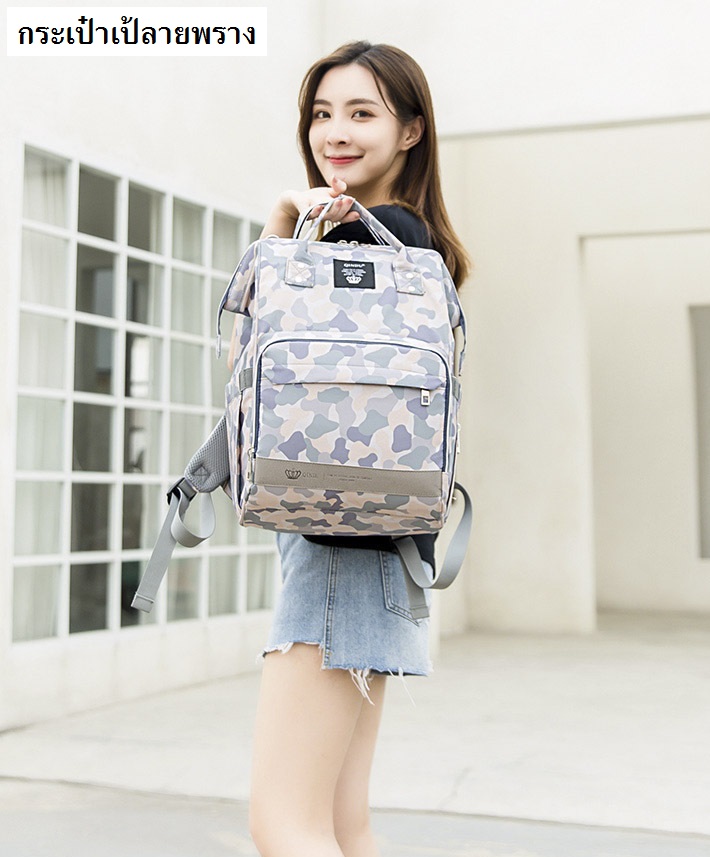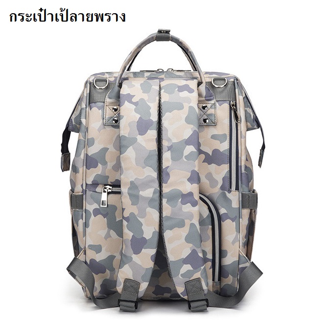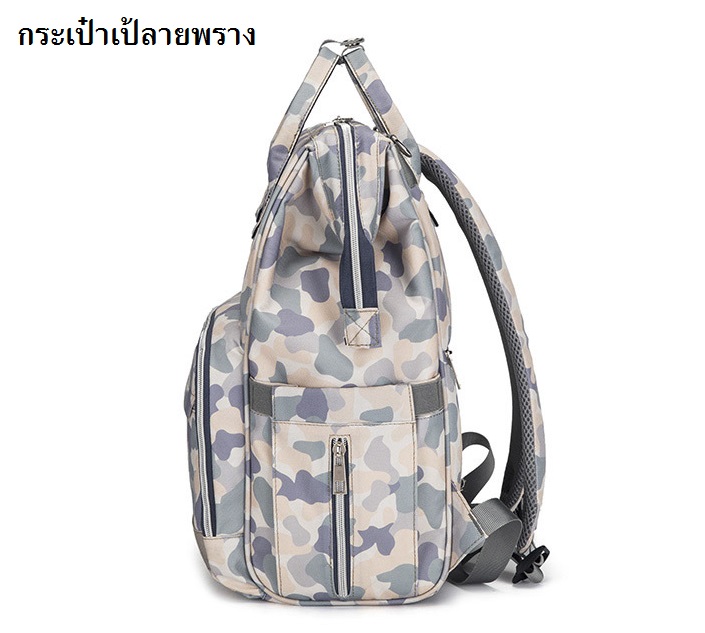 กระเป๋าเป้ลายพราง สำหรับคุณแม่ ใส่ของได้เยอะ มีช่องแบ่งของได้อย่างเป็นระเบียบ