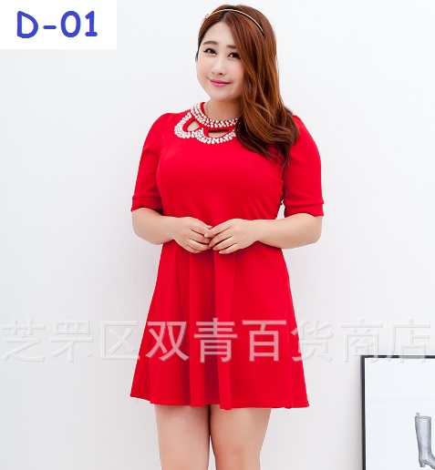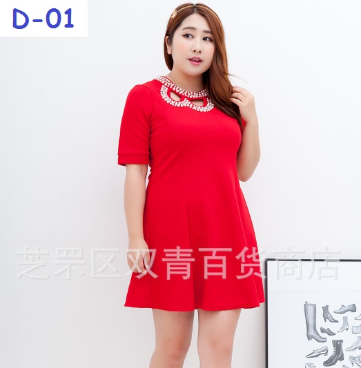 เดรสแฟชั่นสาวอวบ เนื้อผ้ายืดได้เยอะ เนื้อนิ่ม ใส่สบาย ช่วงคอประดับลูกปัด สวยมาก แอบหรูเบาๆ