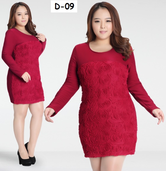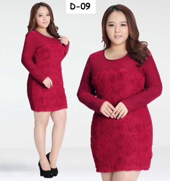 เดรสแฟชั่นสาวอวบ แขนยาว เนื้อผ้ายืดได้เยอะมากค่ะใส่แล้วเข้ารูปสวย ด้านหน้าผ้าจับย่นๆลายดอกไม้สวยมาก
