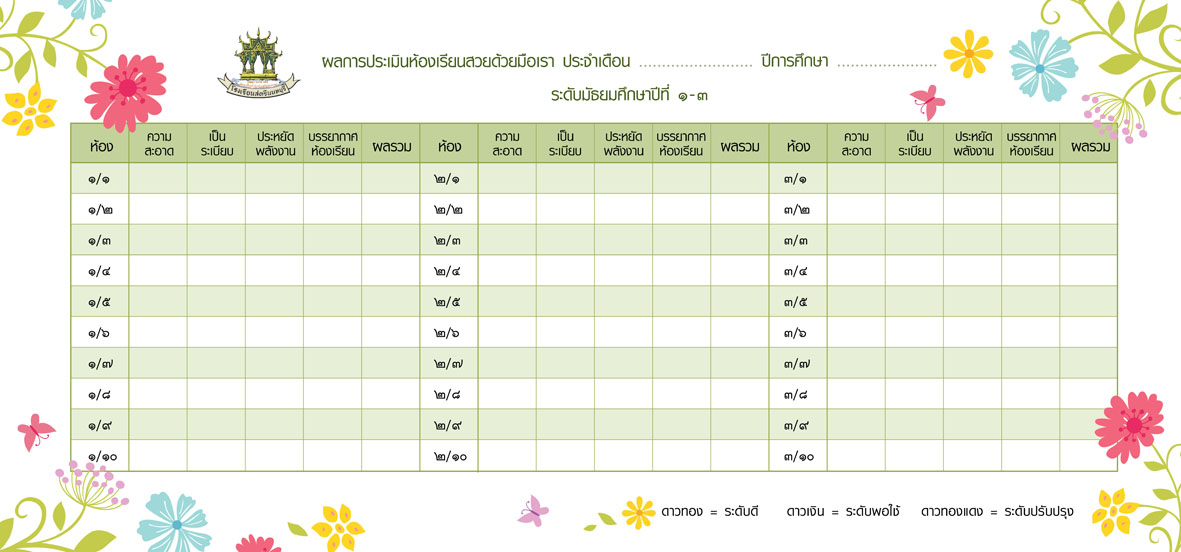 บอร์ดแม่เหล็กผลการประเมินห้องเรียนสวยด้วยมือเรา