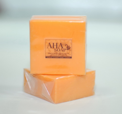 สบู่ส้ม AHA ด้วยสารสกัดจากกรดผลไม้ วิตามินซี วิตามินอี ช่วยแก้ฝ้า กระ จุดด่างดำ ลดรอยหมองคล้ำ ทำให้ใบหน้าขาวสดใส นุ่มเนียนน่าสัมผัส