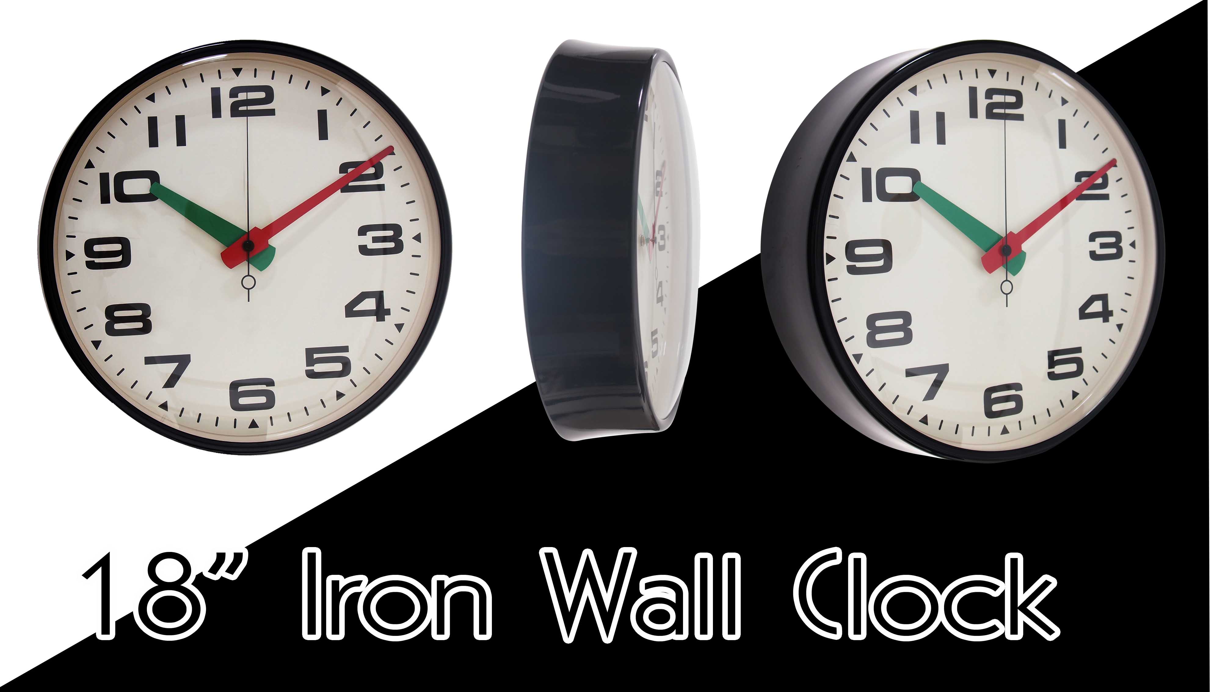 นาฬิกาเหล็กแขวนผนังทรงกลม 18 นิ้ว Vintage Style สีดำเงา