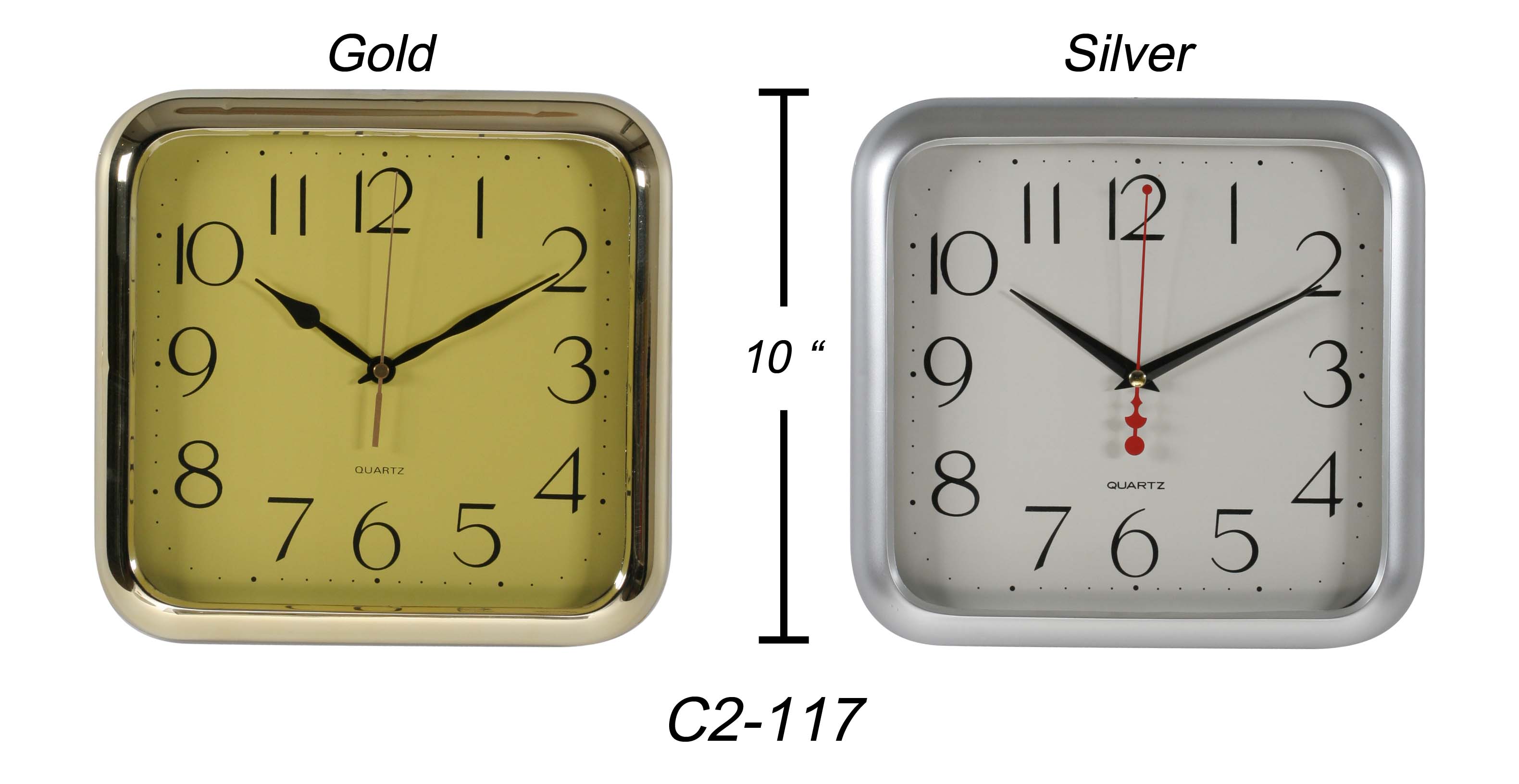 นาฬิกาขอบ สี่เหลี่ยม ชุบสีเงินด้าน ขนาด 10 นิ้ว เครื่องญี่ปุ่น