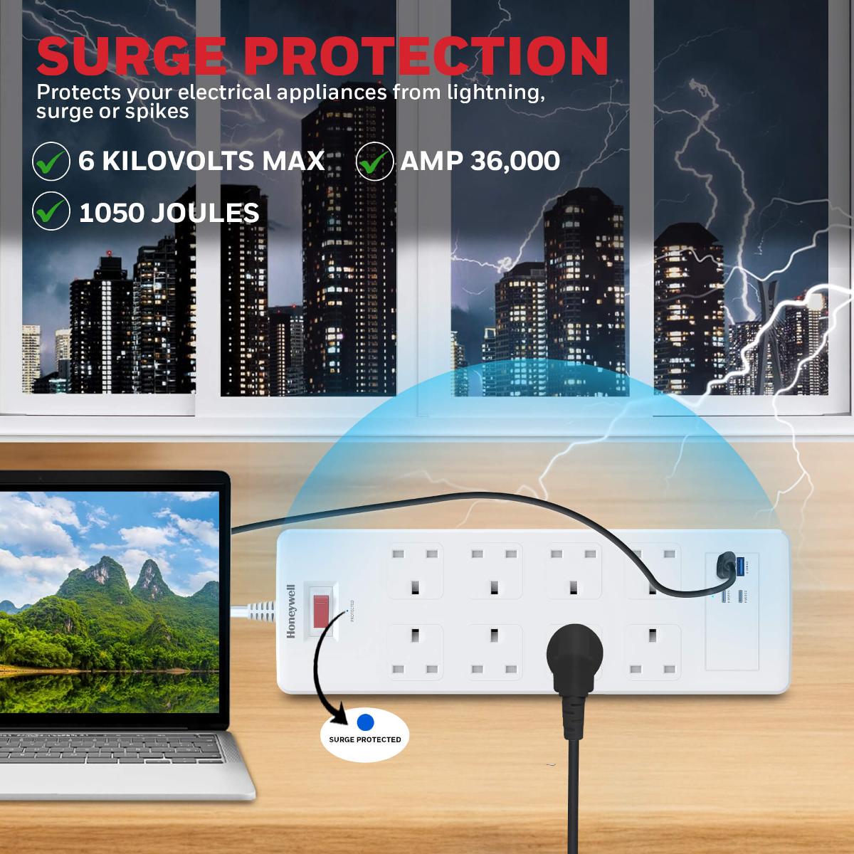 Honeywell 8 Outlet Surge Protector with 2 Type C & 2 USB HC000053SRG1.8MWHT82UPD25WTH