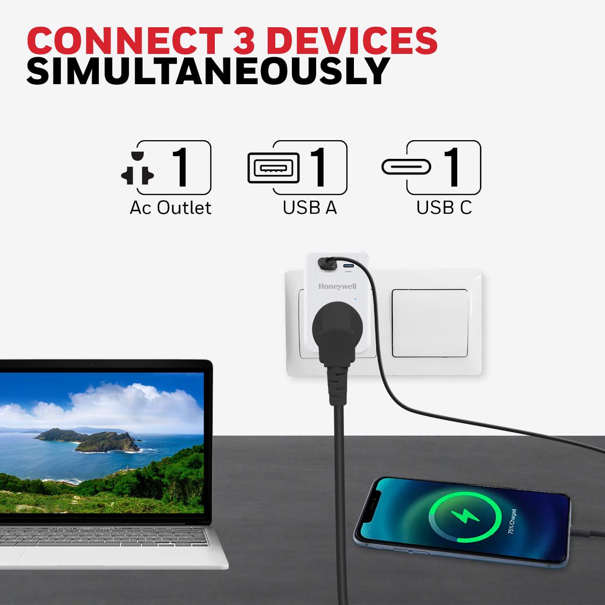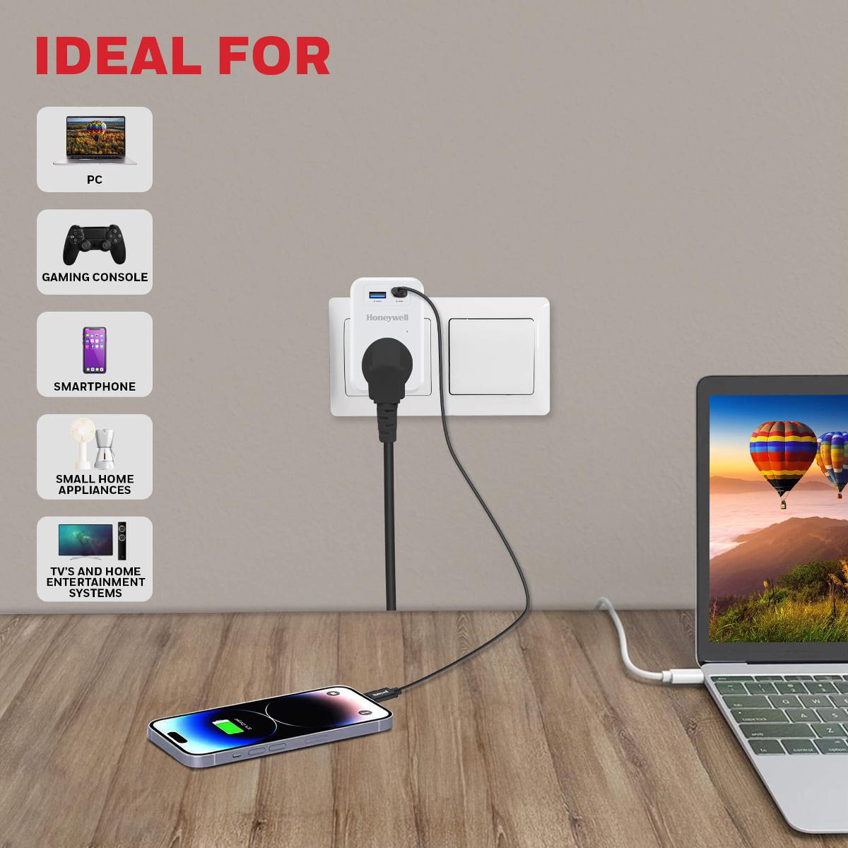 Honeywell Surge Cube with 1xType C with PD & 1xUSB HC000033SRGWHT11UPD20WTH