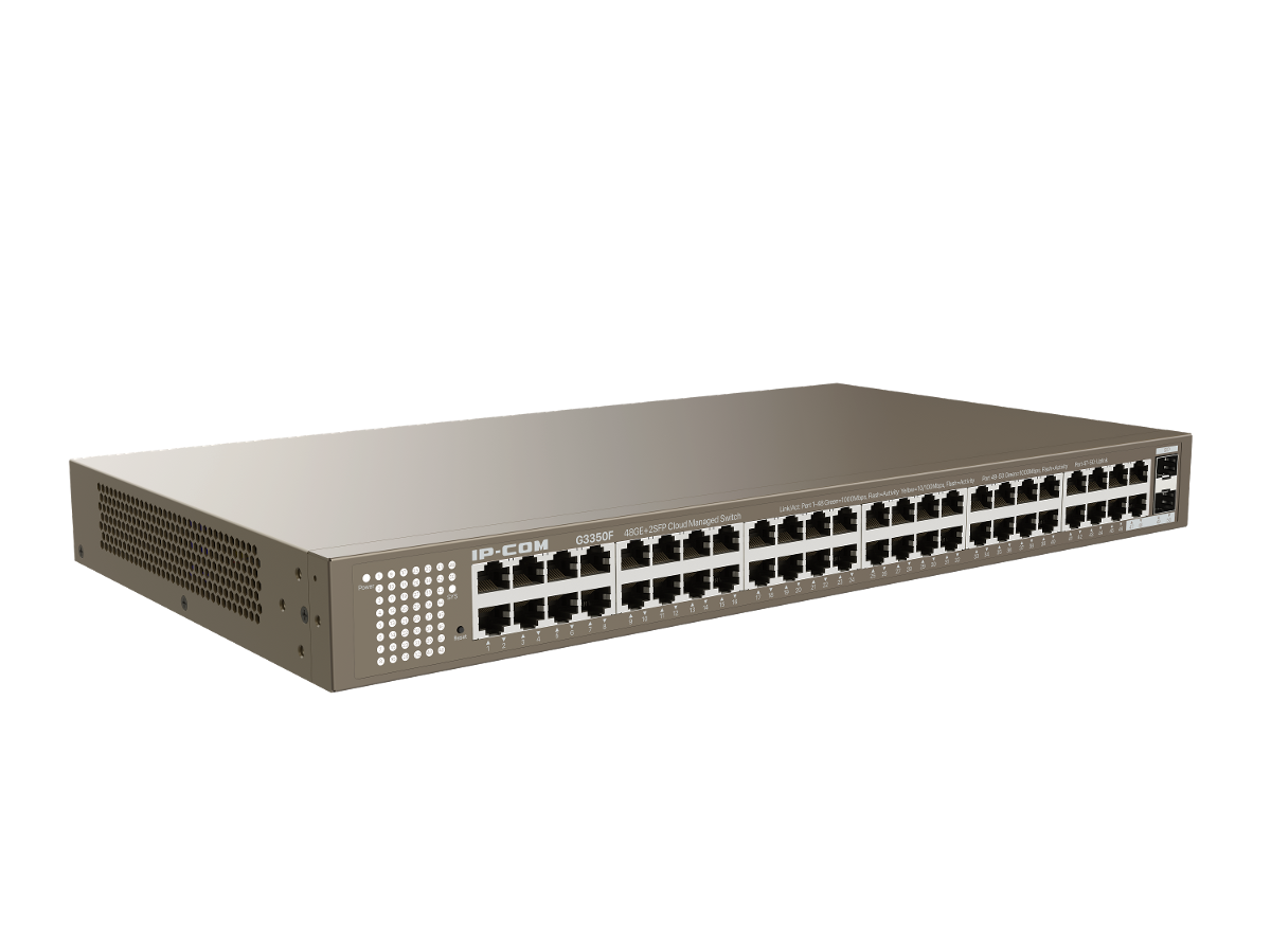 SWITCH (สวิตซ์) IP-COM G3350F 48GE+2SFP Cloud Managed Switch, 48 x 10/100/1000 Base-T Ethernet ports; 2 x 100/1000 Base-X SFP ports