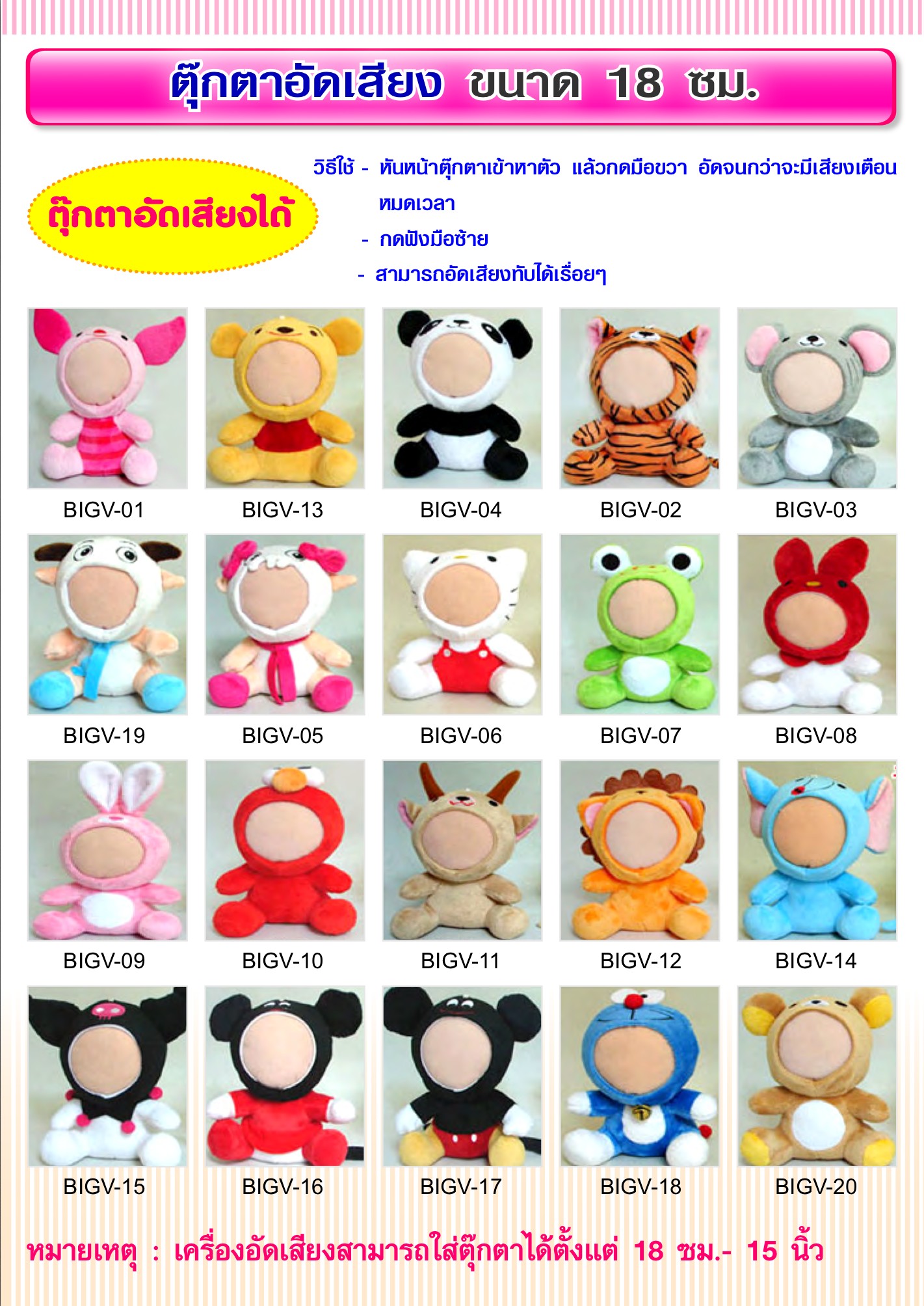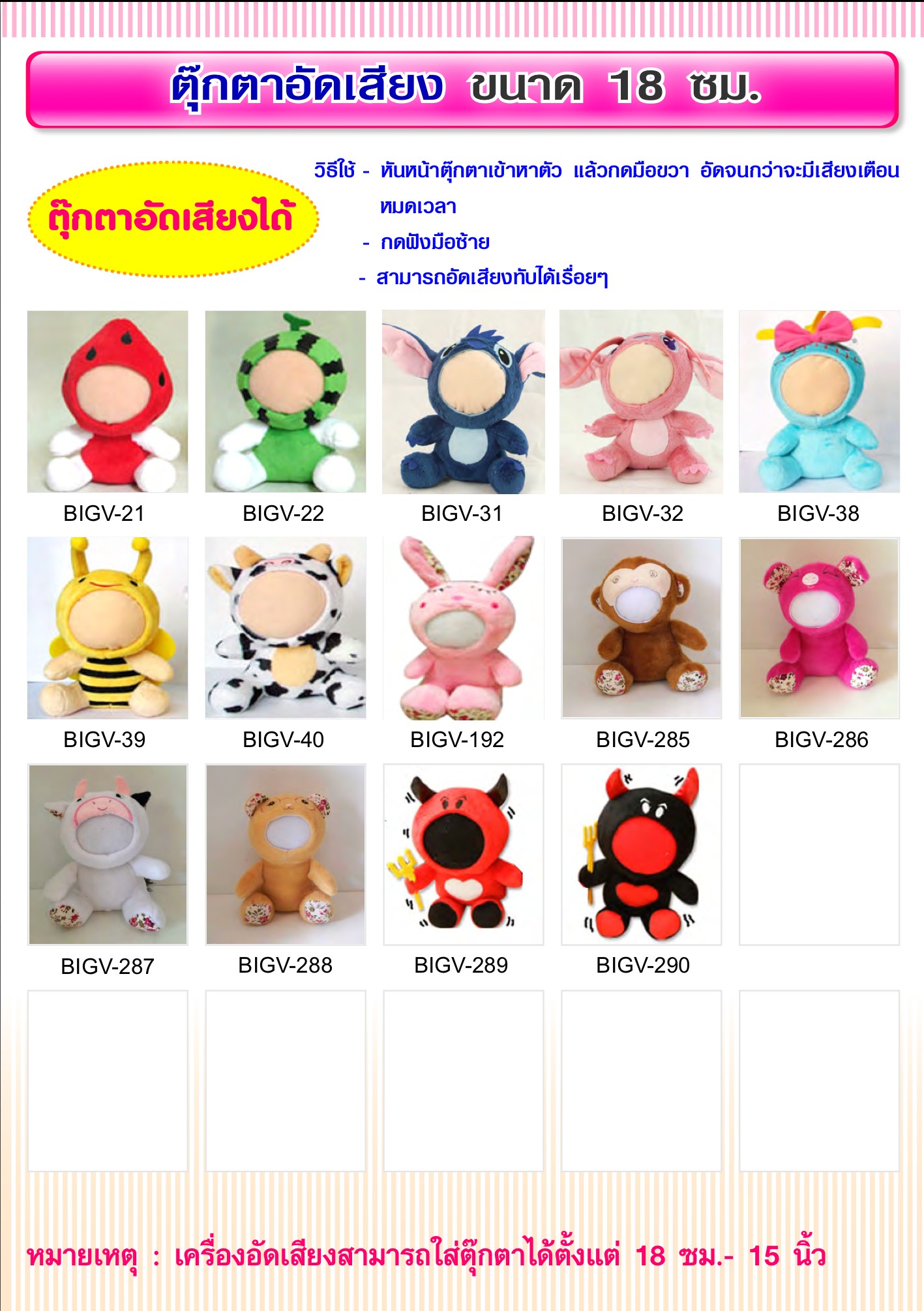 ตุ๊กตาอัดเสียง ขนาด 18 ซม.