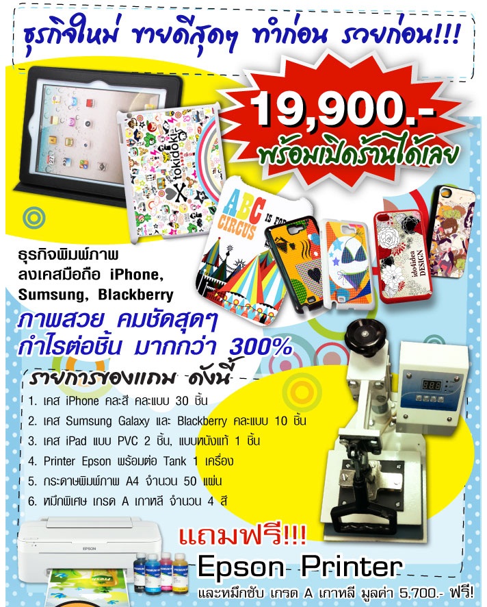 นอกจากนั้นแล้วทางร้านยังต่อยอดธุรกิจเพื่อเสริมรายได้ให้กับท่านอีกทาง คือ ธุรกิจพิมพ์ภาพลงบนเคสมือถือต่างๆ