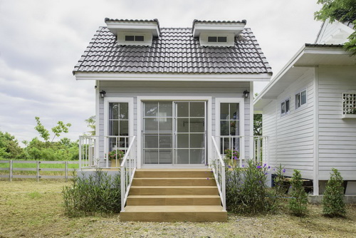 3. บ้านสไตล์วินเทจ ชั้นเดียว มีระเบียง พื้นที่ใช้สอยรวม 20.25 ตร.ม. 1 ห้องนอน 1 ห้องน้ำ
