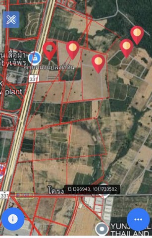 ให้เช่าที่ดินระยะยาวบ้านบึงชลบุรี ที่ดินติดถนน 331บ้านบึงชลบุรี ผังเหลืองเขต eec ชลบุรี เนื้อที่รวม 190-0-67 ไร่