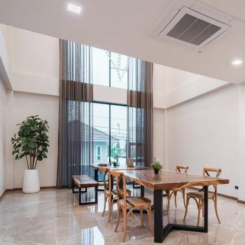 เพดานสูง 2.7 - 2.8 เมตร Double Volume 6 เมตร มีพื้นที่อเนกประสงค์ ไฟ 3 เฟส รองรับ EV Charger แอร์ทุกห้องพร้อมเฟอร์นิเจอร์