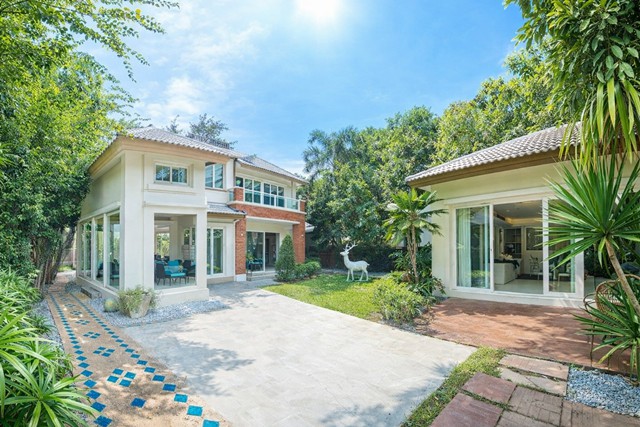 Laddarom Luxury Mansion detached house for rent 5bed 4 bath located 3 km. from Bang Rak Noi Tha It MRT station in Ratchaphruek Rattanathibet area The property sits on a 132 sq.wa. 350 sq.m. plot priced at 64,999 B-M. Close to Central Town Rattanathibet 5 km. hospitals and expressways Ideal for residential living or premium investment on a prime main road with convenient transportation