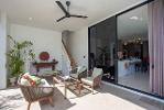 ระเบียงขนาดใหญ่พร้อมทิวทัศน์อันเงียบสงบของสระว่ายน้ำ และคลองน้ำ
