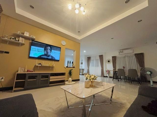 มี 1 ห้องครัว 1 ห้องรับแขก เฟอร์นิเจอร์ + เครื่องใช้ไฟฟ้า แต่งสวนสไตล์อังกฤษ จอดรถในบ้านได้ 2 คัน