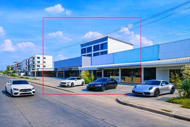 Ready to operate auto service center 4 commercial buildings Makro Pathum Thani 700m. with 10beds 4baths near main road and community within 1 km2. Large land plot suitable for auto service hub warehouse or showroom. Land size 340 sq.w. with usable area over 2,360 sq.m. 249,999 baht per month, or a sale price of 44.9 million baht.