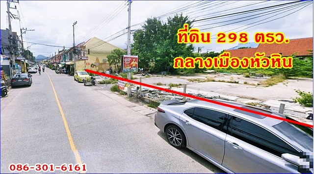 ให้เช่าระยะยาว ที่ดินการค้าติดถนนใหญ่กลางเมืองหัวหิน ติดถนน2ด้าน 298 ตรว. ซ.หัวหิน94 โทร 086-301-6161