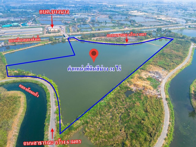 ขายที่สีม่วง 31 ไร่ ใกล้ถนนเลียบมอเตอร์เวย์ สาย 7 ใกล้นิคมอมตะ ชลบุรี ต.บางนาง อ.พานทอง จ.ชลบุรี