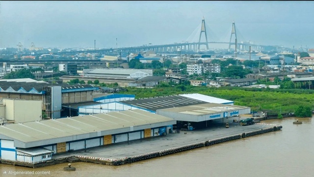 ถ.สุขุมวิท ปู่เจ้า ท่าเทียบเรือ ให้เช่าโกดัง 1,000 ตร.ม.ติดแม่น้ำ