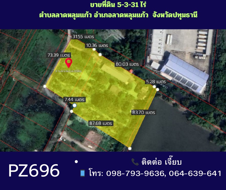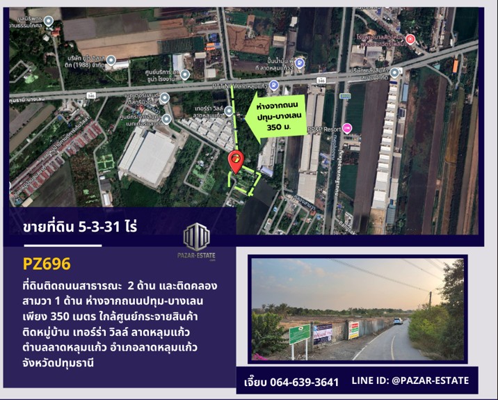 PZ696-ขายที่ดินถมแล้ว 5-3-31 ไร่ ลาดหลุมแก้ว จังหวัดปทุมธานี