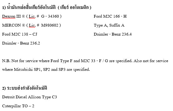 น้ำมันหล่อลื่นเกียร์ระบบอัตโนมัติ ( เกียร์ออโตเมติก ) OMEGA 699 ถูกแนะนำให้ใช้สำหรับหล่อลื่น