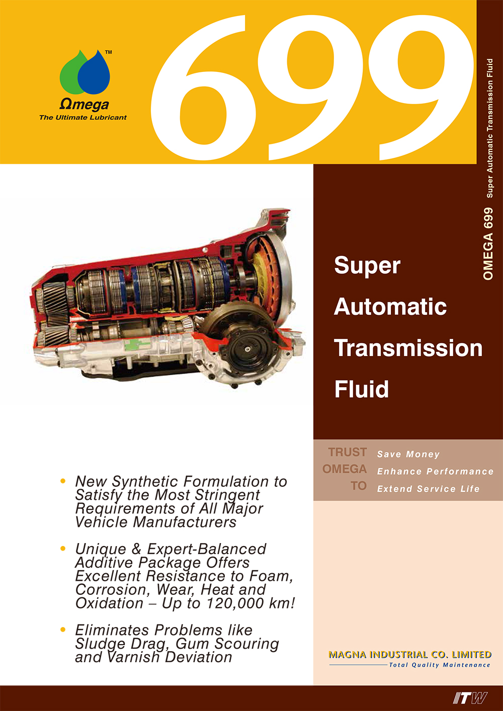 อีเมลล์: gbizinfo2558@gmail.comThe New OMEGA 699 Super Automatic Transmission Fluid is a truly multi-purpose fluid that meets and exceeds all current original equipment manufacturers specifications for automatic transmission fluids, including the latest and most rigorous specifications of DEXRON III®.