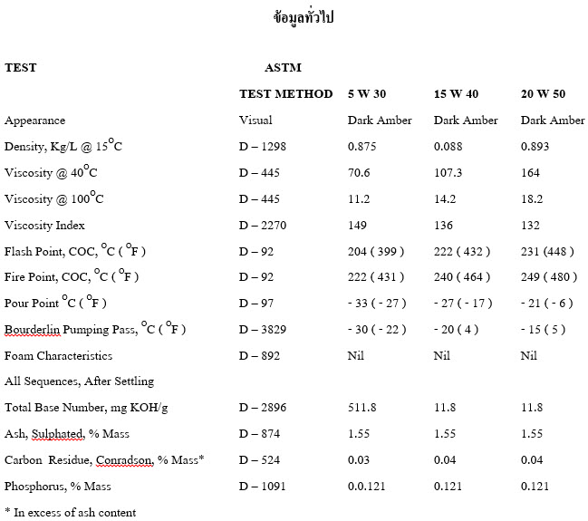 กับแหวนติด วาล์ว และลูกสูบมีความหนืด และป้องกันปัญหาคราบเหนียวก่อตัว ในการใช้งานสภาวะรุนแรงทั่วไป