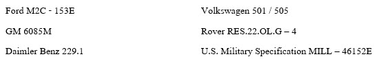 Specification MIL - L-46152D, GM8085M, Ford ESE-M2C 153D, Daimler Benz DB226.1,