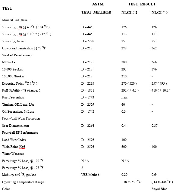 of specification NLGI GC / LB ( ASTM D – 4950 )