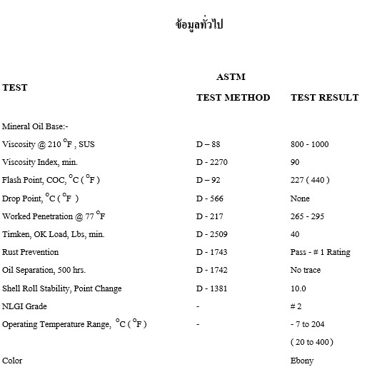 จะยังคงรักษาลักษณะของความหนืดของเนื้อสารหล่อลื่นดั้งเดิมที่นุ่มของNLGI 2 ซึ่งจารบีหล่อลื่นทั่ว ๆ ไป