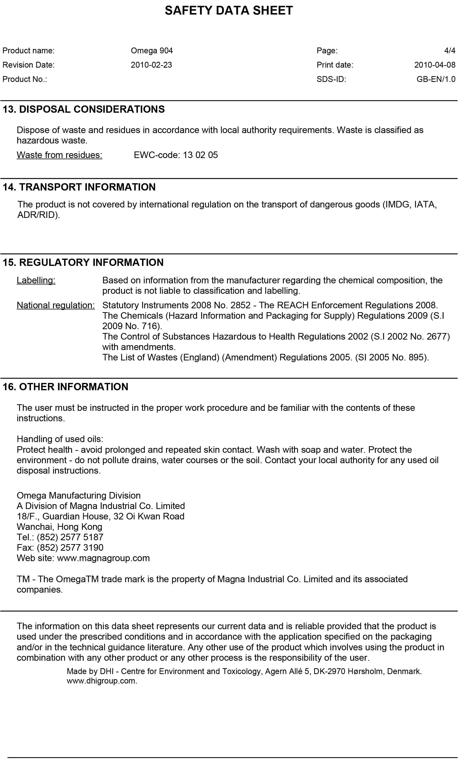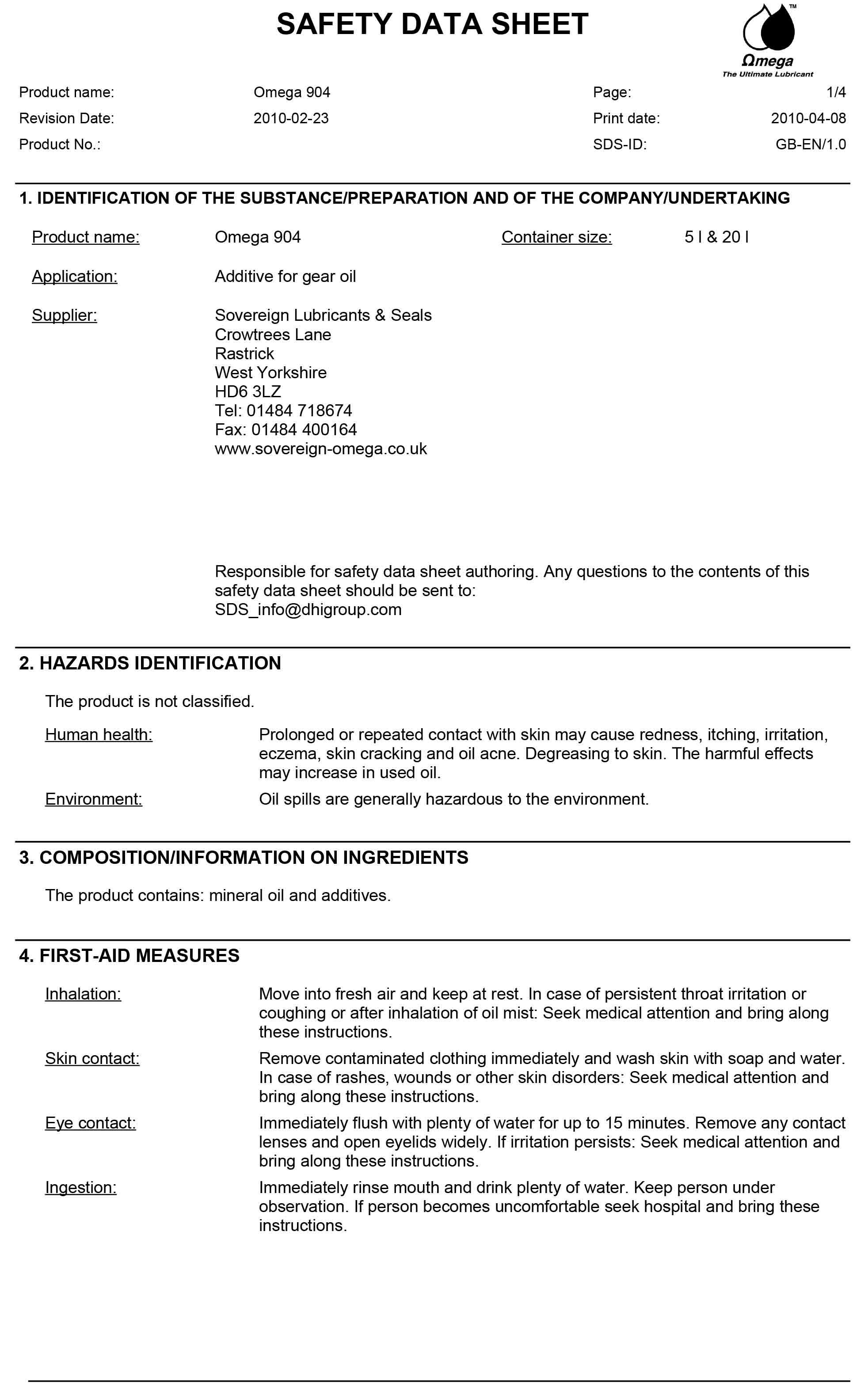 OMEGA 904 เพิ่มสารเสริมชนิดพิเศษที่ดีเยี่ยม , ประกอบด้วยสารต้านทานความดันที่ดีเยี่ยม