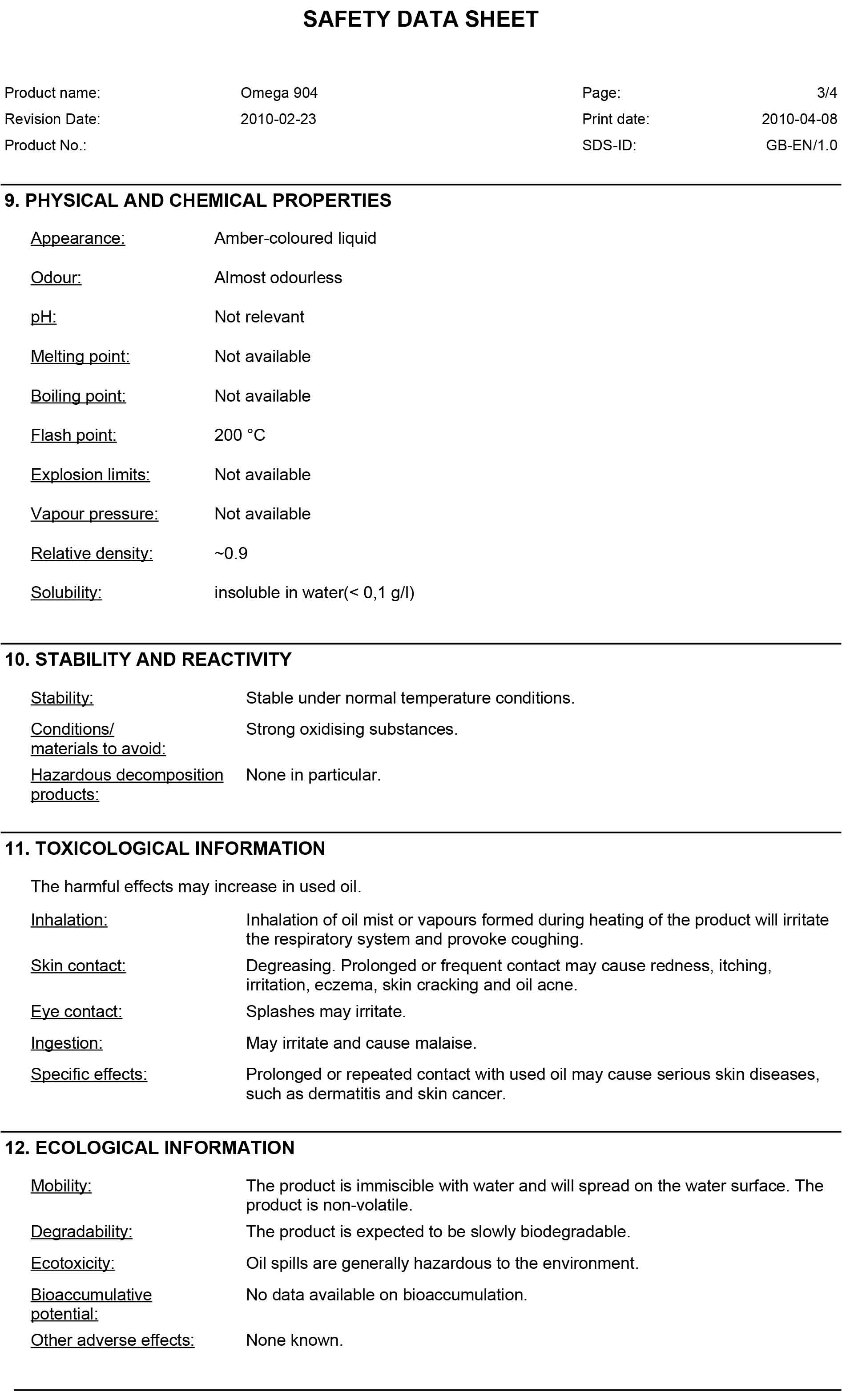 เมื่อการเกิดการออกซิเดชั่นของสารหล่อลื่นปิโตรเลียมเกิดขึ้น, ความหนืดของมันจะเพิ่มขึ้น และ petroleum Oxgrclds ( สิ่งเจือบนที่เป็นกรด ) จะก่อตัวขึ้น สารเติมแต่งสำหรับต่อต้านการเกิดการออกซิเดชั่นใน OMEGA 904 จะขจัดผลกระทบที่ไม่พึงประสงค์เหล่านี้ออกไป และยืนอายุการใช้งานของระบบหล่อลื่นออกไปอีก