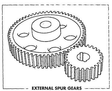 เฟืองชนิดนี้มีเส้นผ่านศูนย์กลางของแกนเพลาที่ขนานกัน โดยมีฟันเฟืองที่มากกว่า และทำให้ฟันเฟืองสัมผัสกัน
